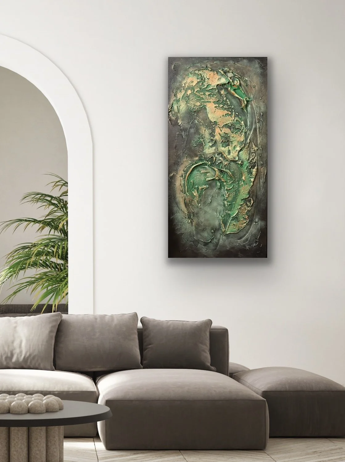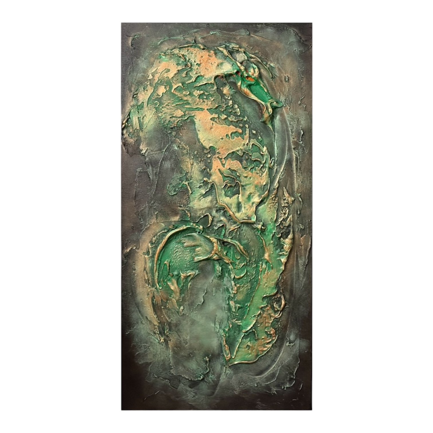 A textured acrylic painting on canvas, featuring rich layers and tactile surfaces that create depth and movement.