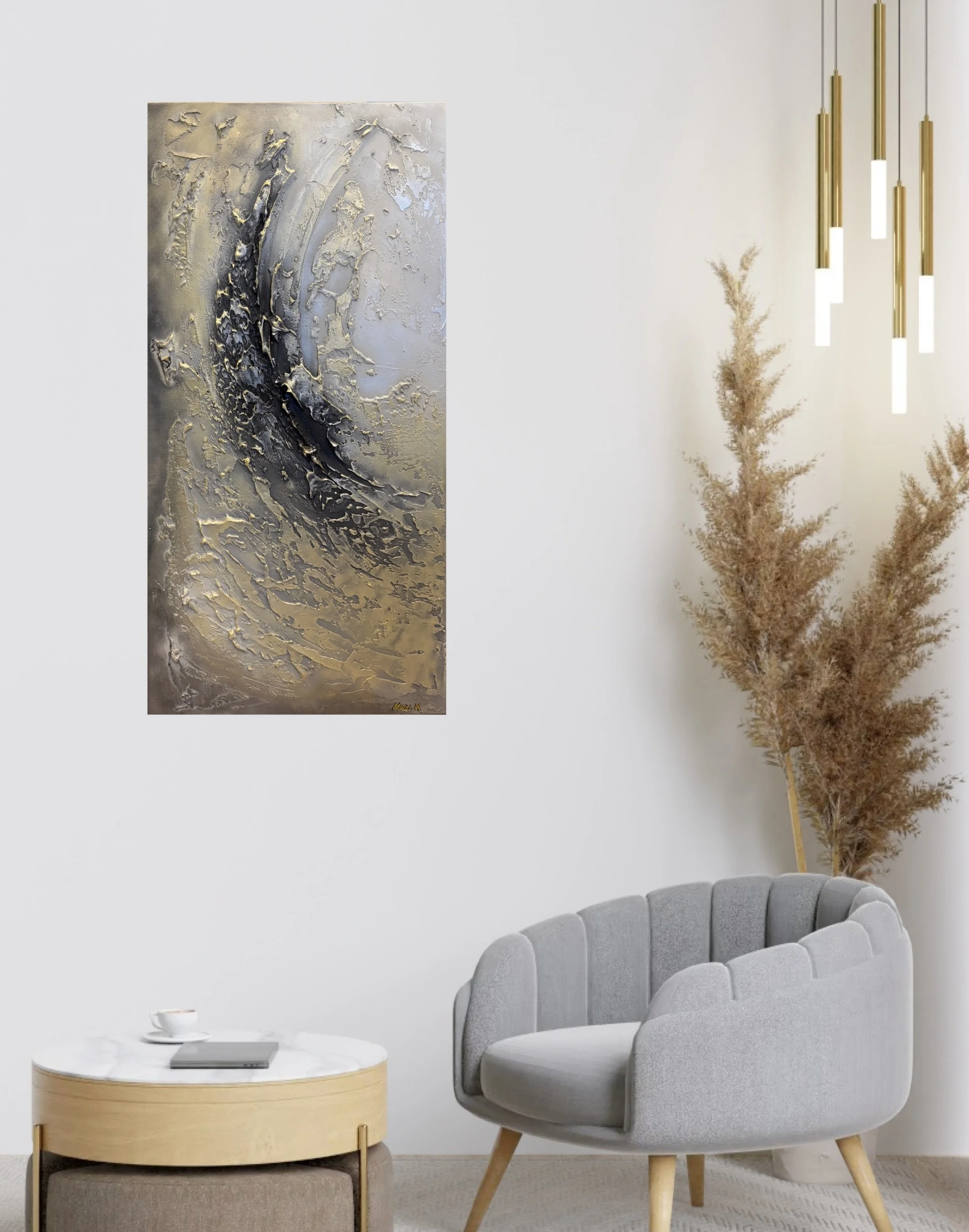 Description: Original textured artwork with a rich, tactile surface that adds depth and a unique visual presence. One of a kind, signed by the artist, certificate of authenticity included. Perfect for enhancing any modern interior.