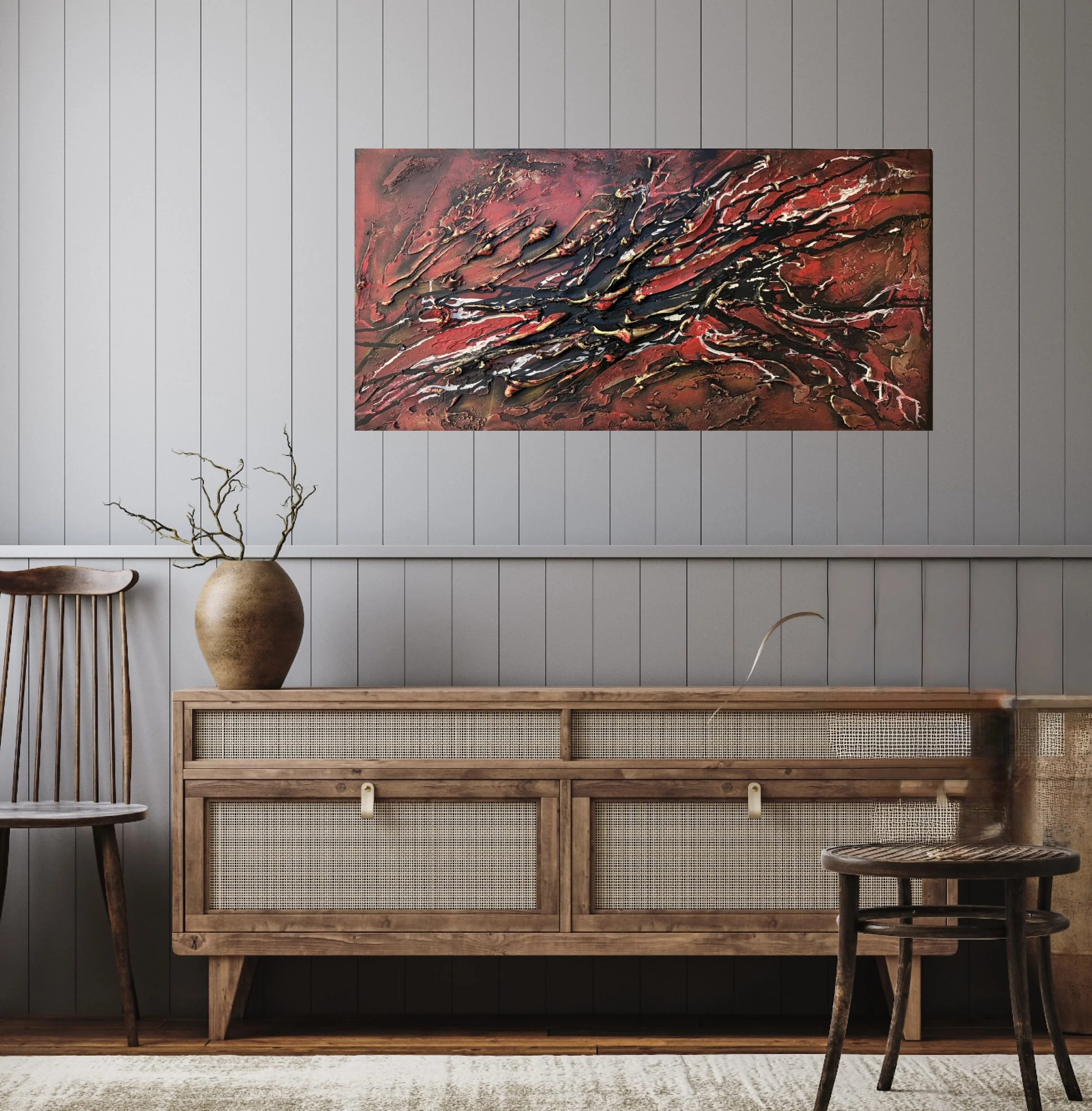 Description: Original textured artwork with a rich, tactile surface that adds depth and a unique visual presence. One of a kind, signed by the artist, certificate of authenticity included. Perfect for enhancing any modern interior.