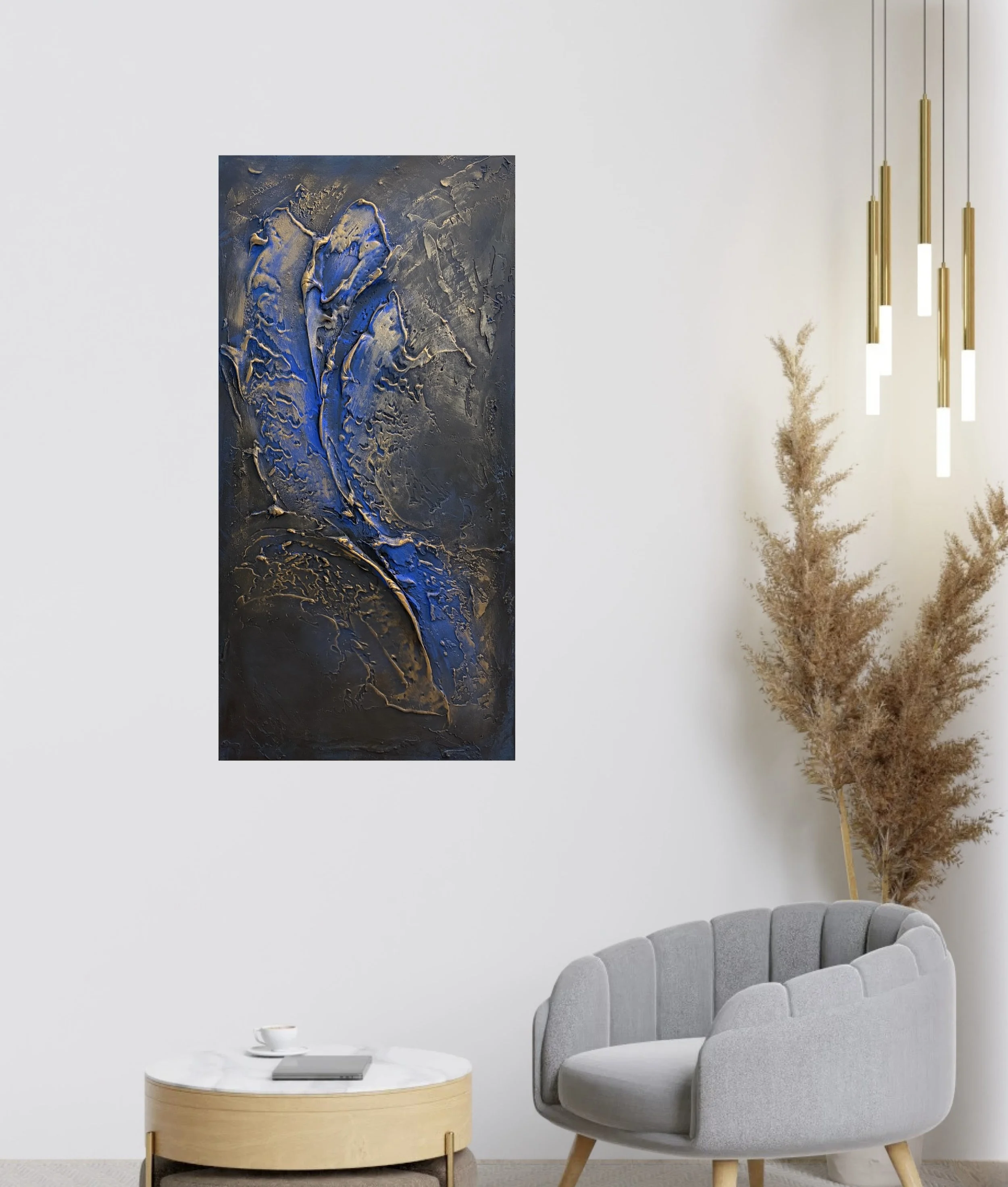 Description: Original textured artwork with a rich, tactile surface that adds depth and a unique visual presence. One of a kind, signed by the artist, certificate of authenticity included. Perfect for enhancing any modern interior.