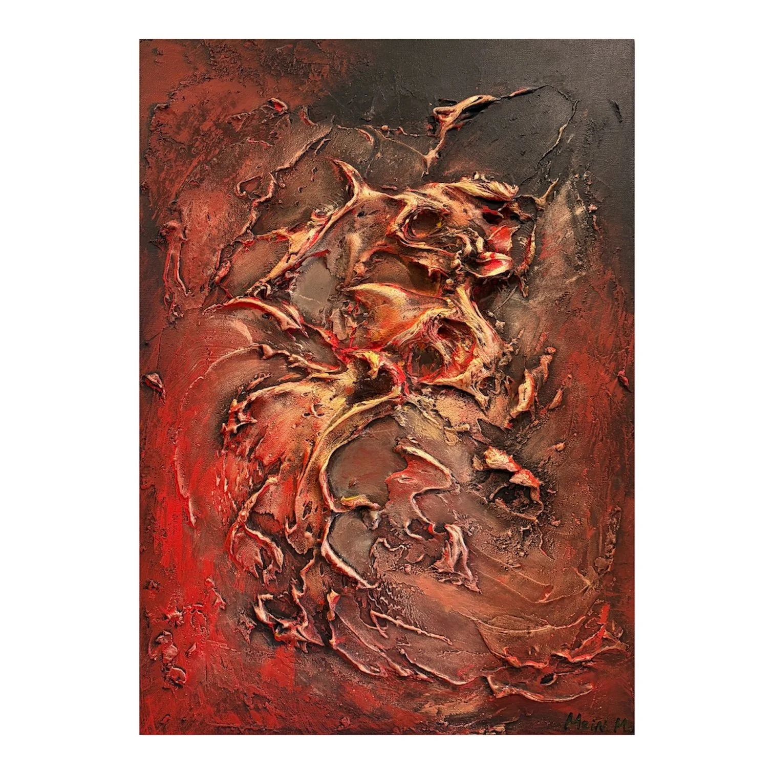 A textured acrylic painting on canvas, featuring rich layers and tactile surfaces that create depth and movement.