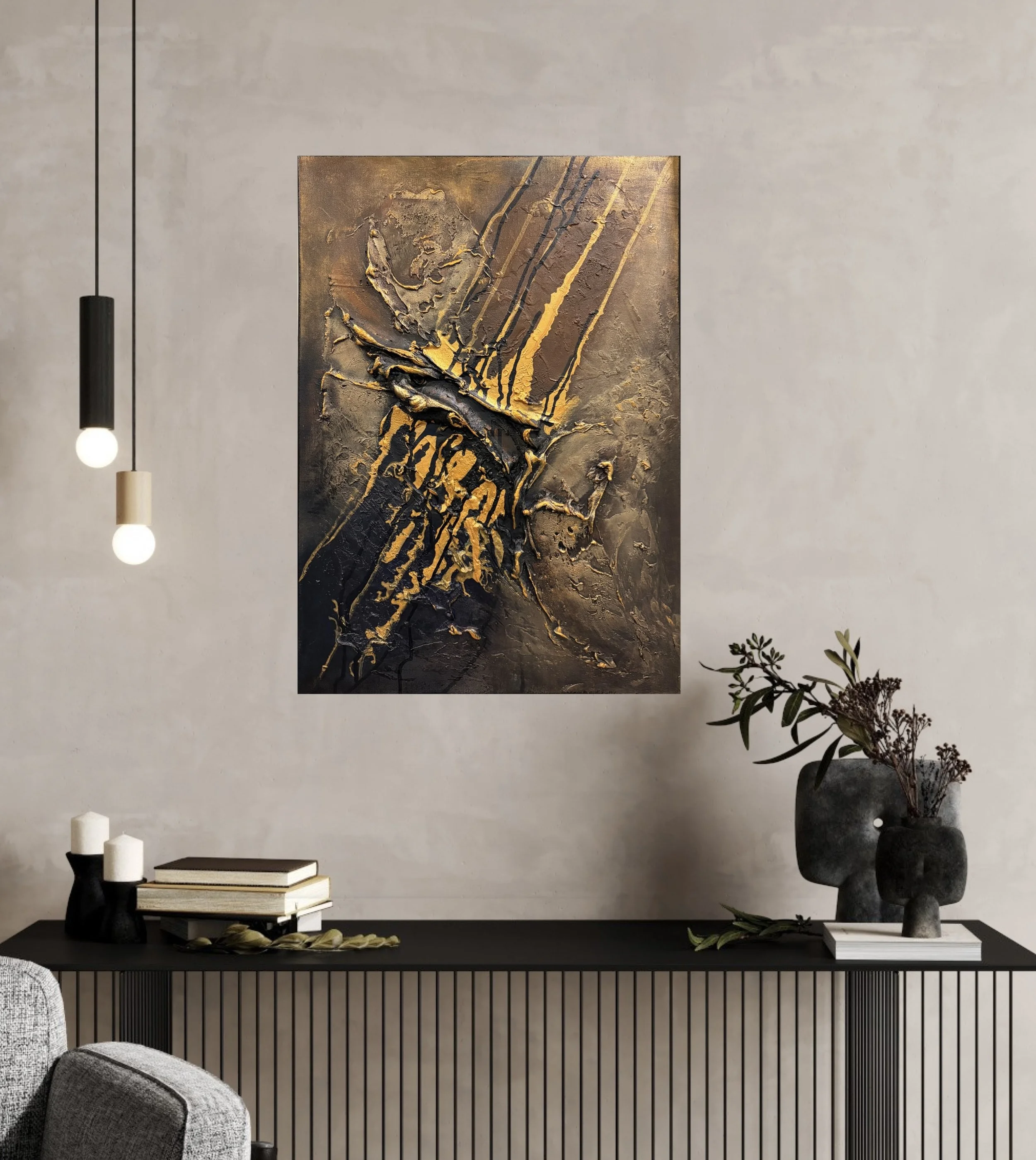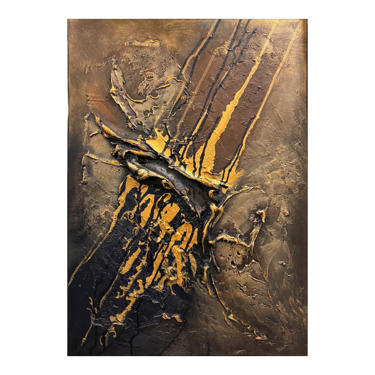A textured acrylic painting on canvas, featuring rich layers and tactile surfaces that create depth and movement.
