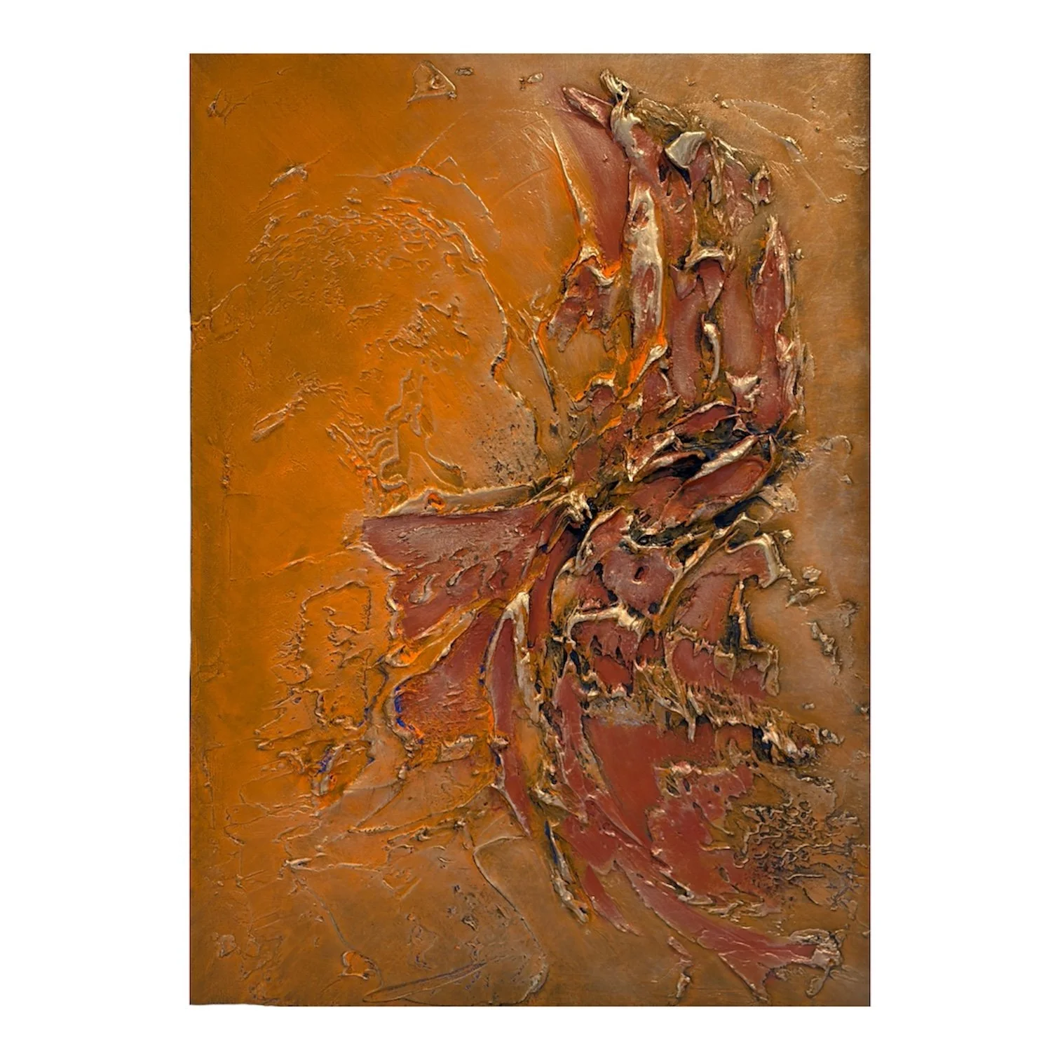 A textured acrylic painting on canvas, featuring rich layers and tactile surfaces that create depth and movement.